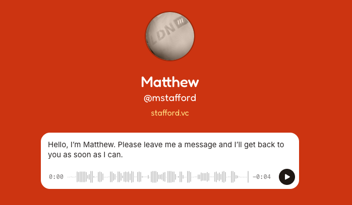 “Hello, I’m Matthew. Please leave me a message and I’ll get back to you as soon as I can.”